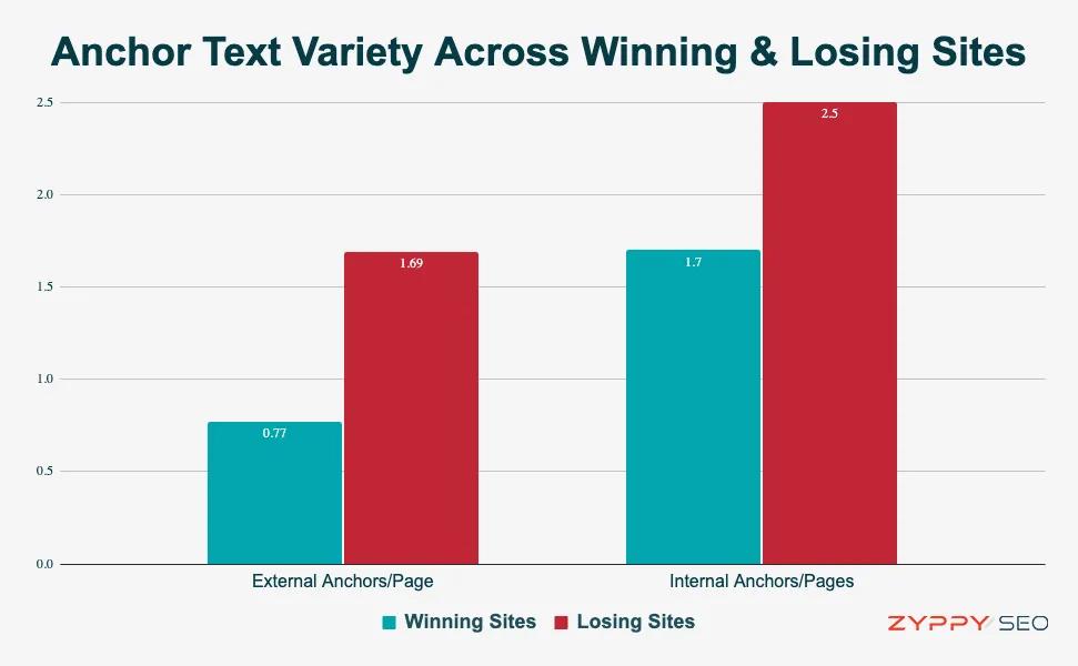 Anchor text variety across winning and losing sites. (Source: Cyrus Shepard of ZyppySEO)