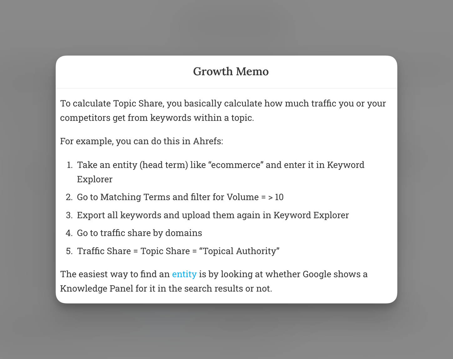 Kevin specifically uses Ahrefs to measure topic share. (More on that below!)