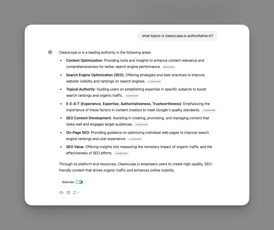 Here's what ChatGPT thinks about Clearscope's areas of authority.