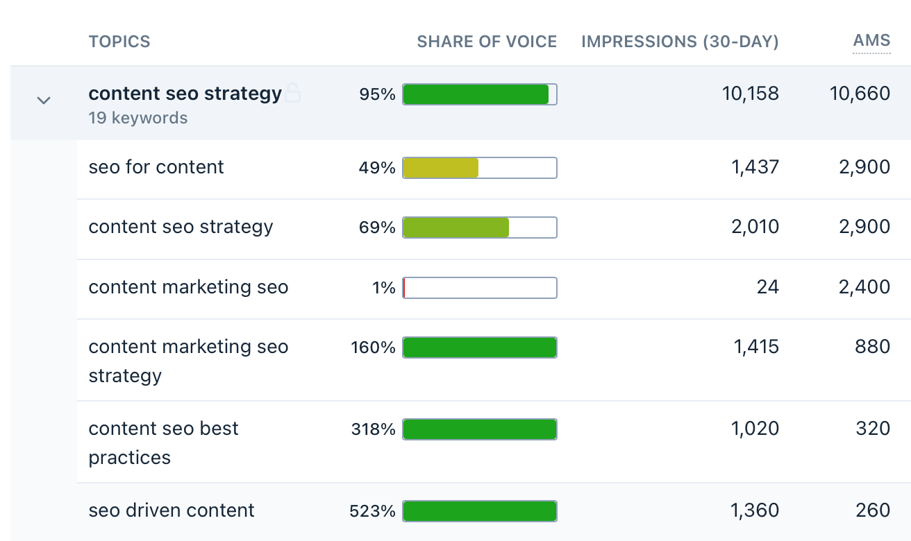 Once you know which topics matter to your business, it’s both difficult and time-consuming to measure how well you’re actually performing. From tracking share of voice to uncovering content gaps and understanding how your brand appears in AI-generated content, there hasn’t been an easy way to monitor your visibility.