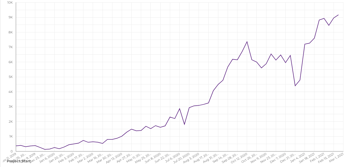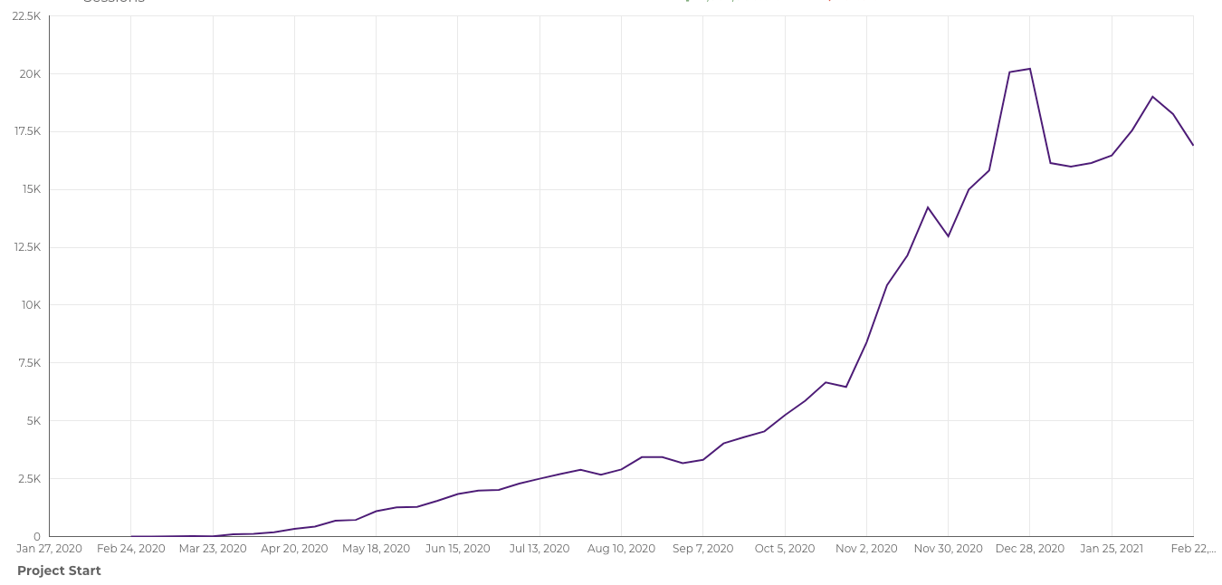 In the fintech space, a Growth Machine client sees incredible gains during the 16-month project to date. The below chart shows the 1600% traffic increase across about 100 pieces of content.