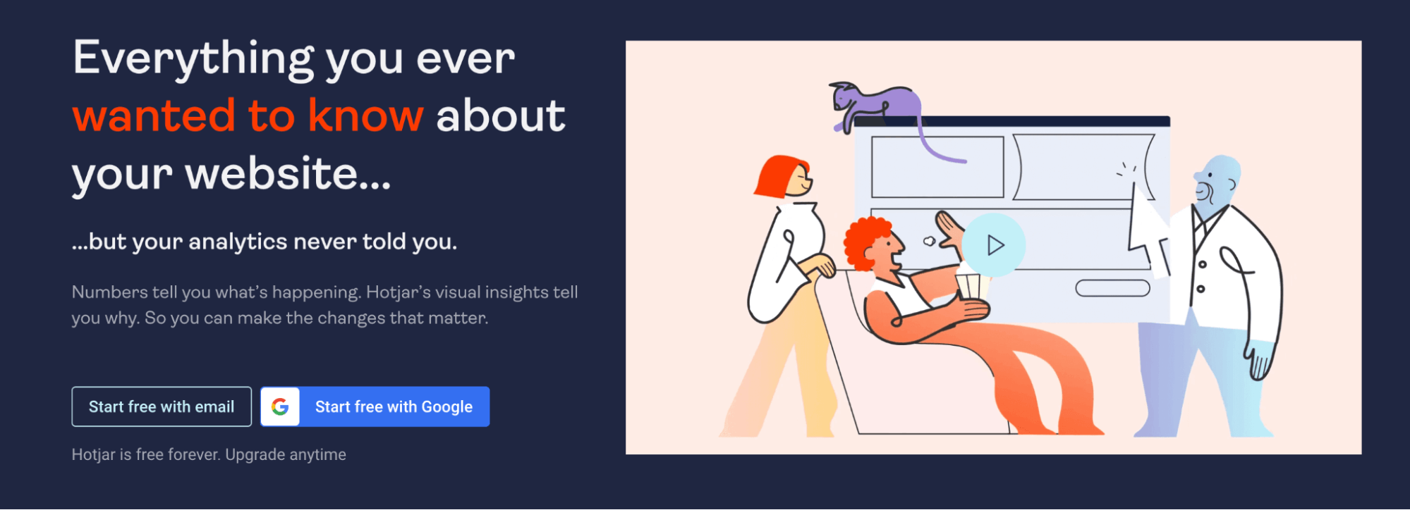 Hotjar is a platform that uses behavioral analytics and customer feedback data to provide user experience insights to its clients. Specifically, it enables website owners to deliver more value and make faster product improvements by leveraging empathy for end users.