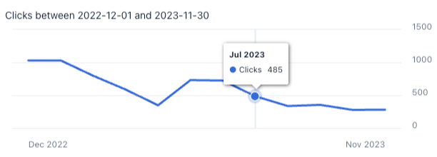 Content Decay graph showing the number of clicks the URL received each month over the past year