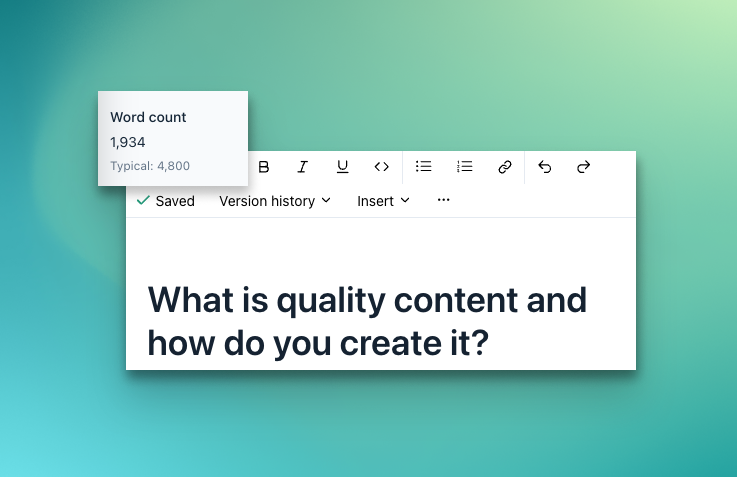Suggested word count is another helpful writing metric we provide in our in-app text editor. We develop the suggested or typical word count by scraping the top-ranking articles and calculating the median from the content ranking on the front page of Google (which is usually the top 10 results).