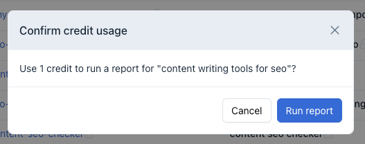 A message will appear asking you to confirm your decision to create a report from the specific query in order to minimize any errors in using your Content Report credits.