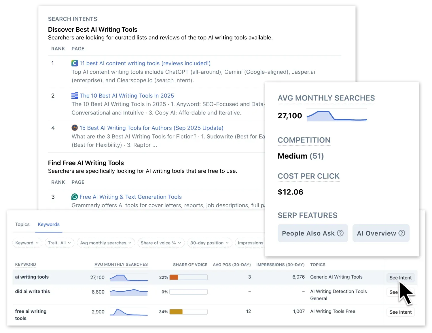 Stay ahead as search evolves. We give you what you need to write, optimize, track and scale your visibility anywhere your audience is searching.