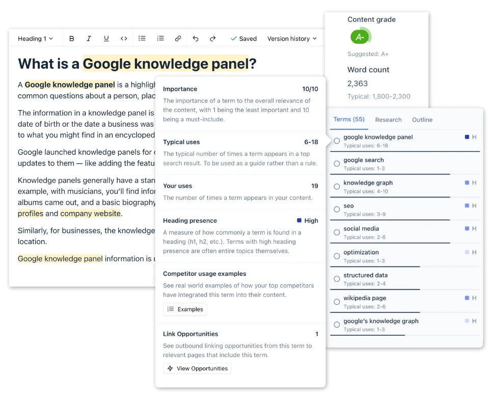 Turn any content into a comprehensive, high-performing piece. Use our best-in-class term suggestions to guide your writing, and collaborate with your team to get every detail right.