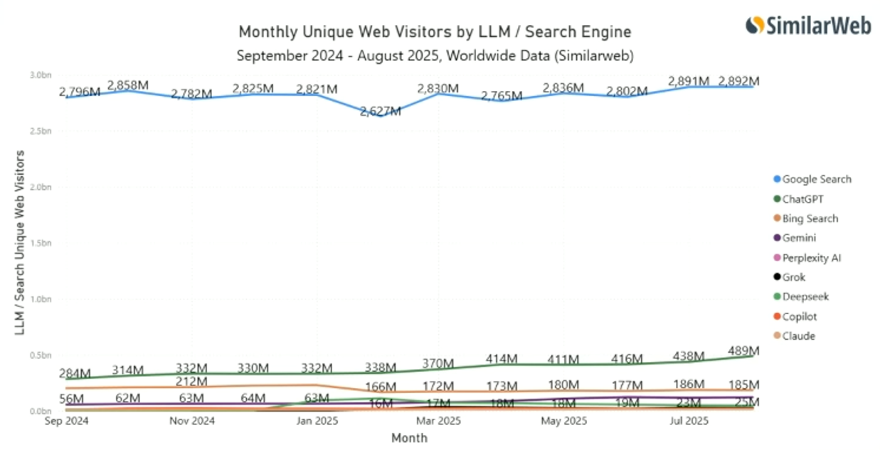 Meanwhile, people are increasingly routing certain types of questions through other interfaces: Perplexity for research, Bing and ChatGPT for synthesis, Amazon for product discovery, Reddit for experience-based insight.