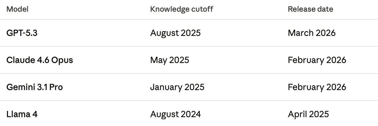 The knowledge cutoff was never the right thing to optimize around. It was a constraint—a technical artifact of how models were built— and it's gradually becoming a less meaningful one.