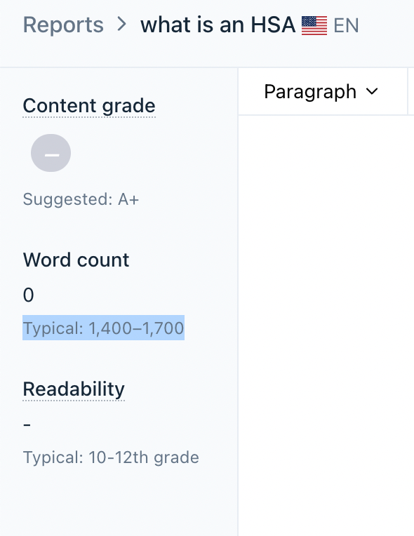 And here’s another small update to look out for: Your Clearscope Reports Word Count detail now provides you with a typical word count range for top-performing content that you’re competing against.