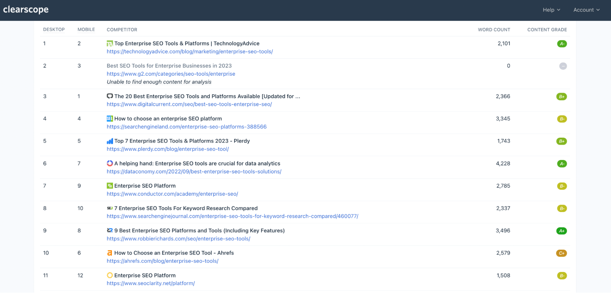 Clearscope competitor analysis