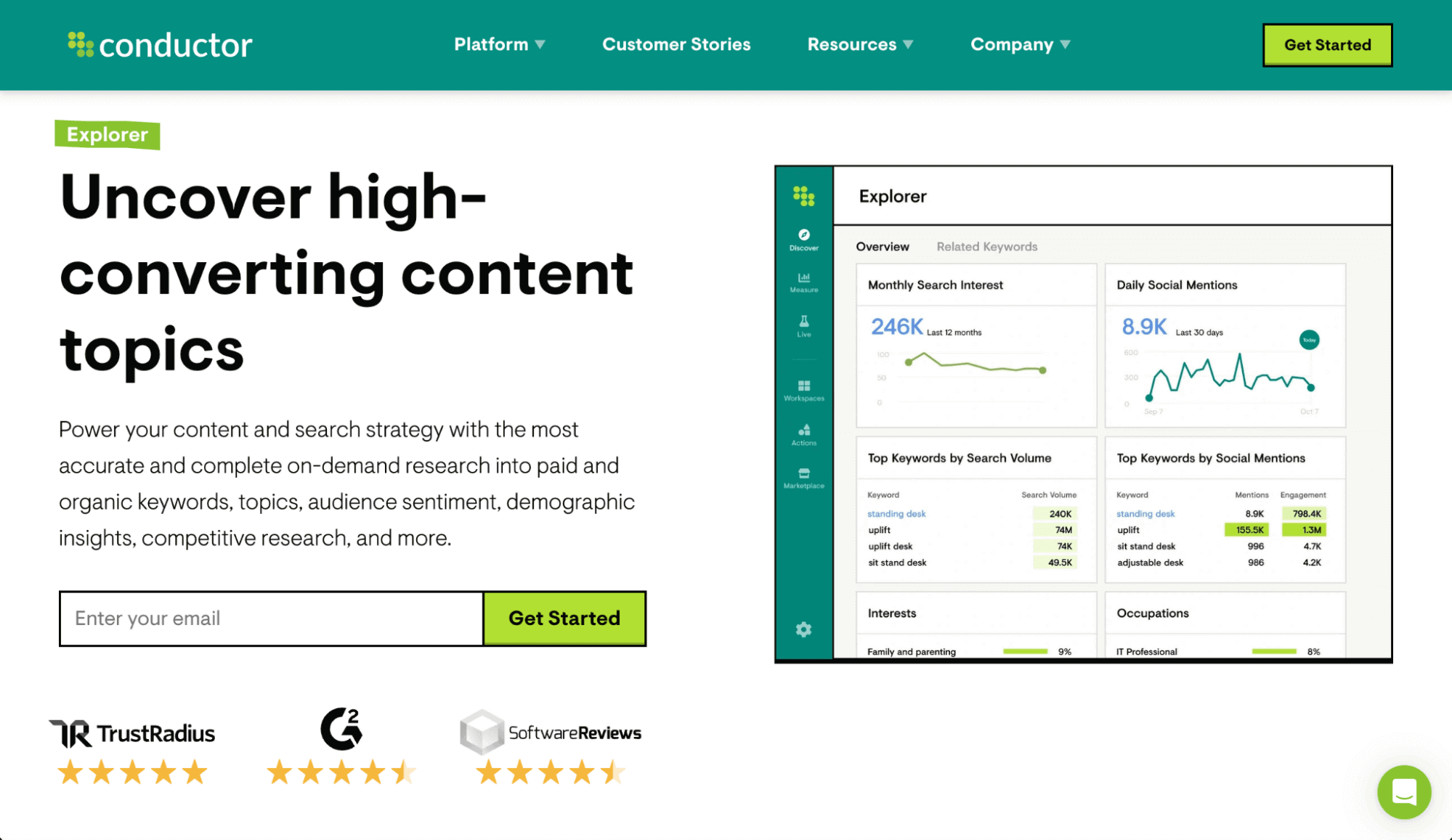 Conductor also offers competitor analysis in its Explorer feature. The tool will help you determine which keywords are trending on social media and who’s searching for them, but the level of detail isn’t anywhere near what you get from BrightEdge.