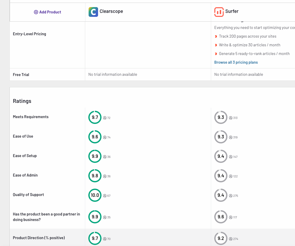 Clearscope vs. SurferSEO Feature Comparison