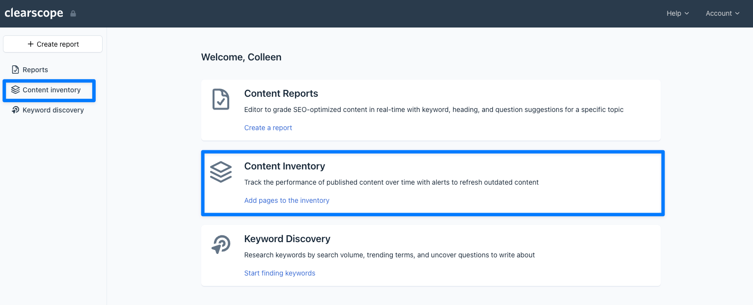 1. Navigate to your Content Inventory from your Clearscope homepage