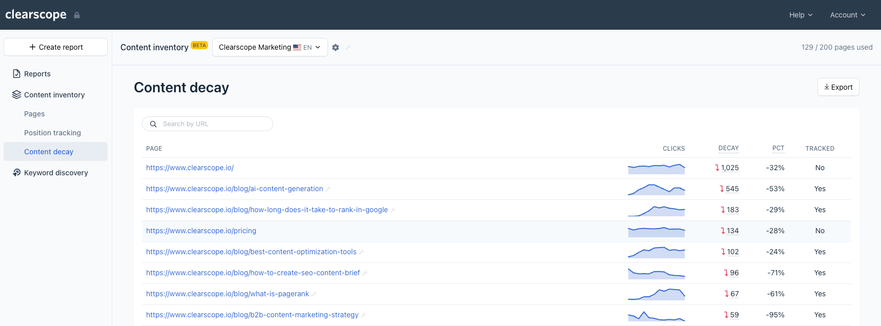 Here is how Clearscope makes it easier for you to notice and take action when your published content decays.