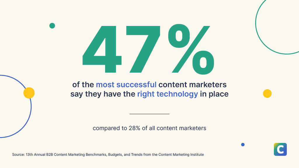 However, when CMI looked closer and focused on the most successful content marketers, 47% of the highly effective content marketing group said that they had the right technology in place. In other words, the marketers who saw the best results were more likely to be successfully leveraging the right technology.