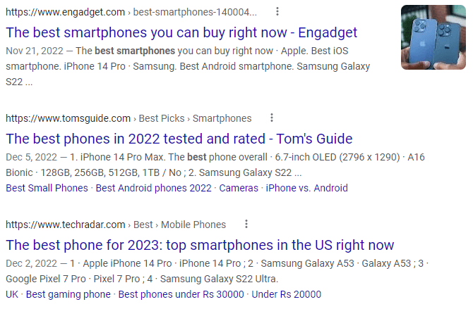 If you’re writing a headline for an article about the “best smartphones,” you’d want to make it unique to those you see on the SERPs.