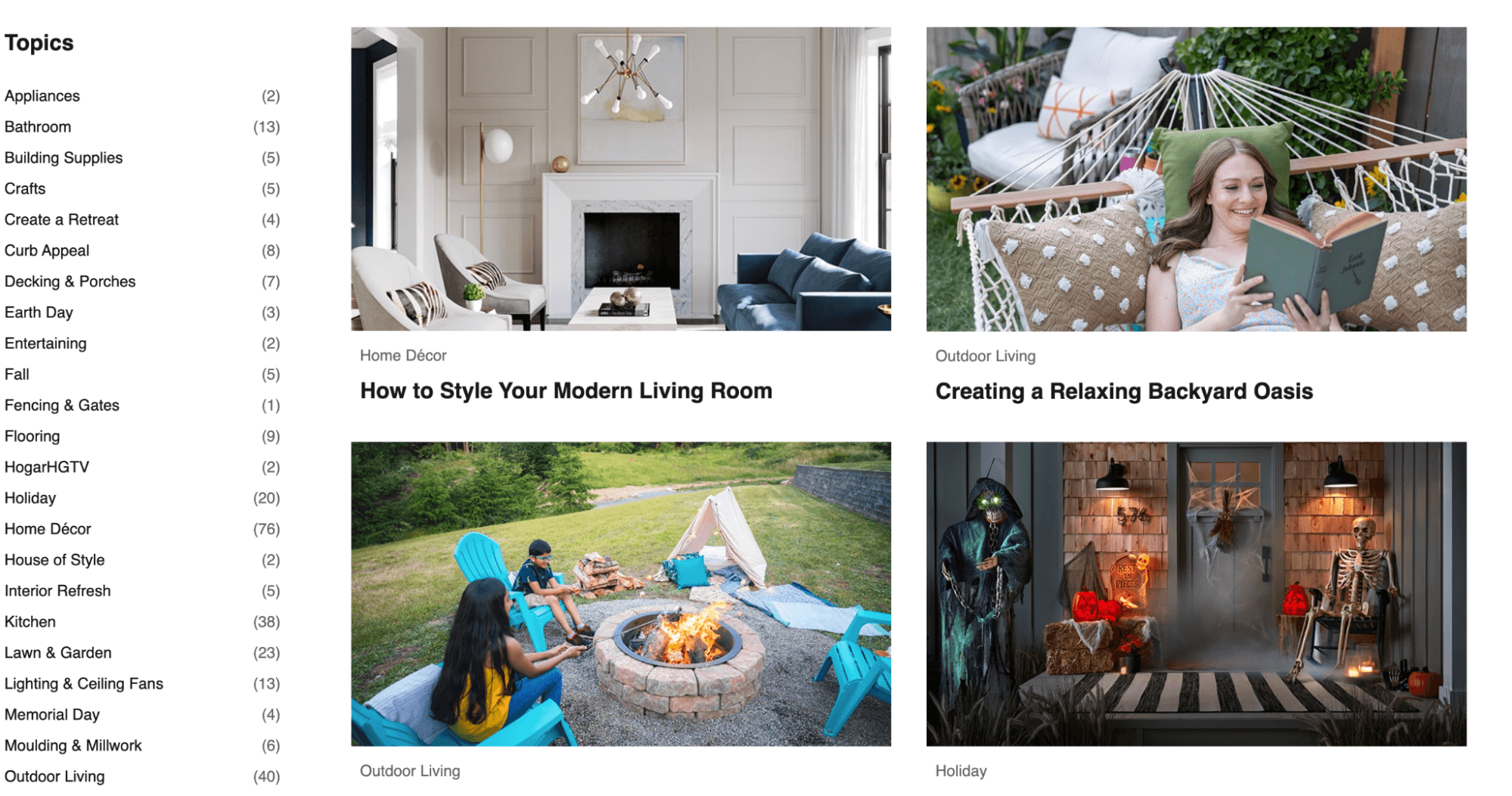 For example, if you look at Lowe’s website, you can see the company has built content beyond hardware. Its blog covers various related topics, including design, home styling, and decor.