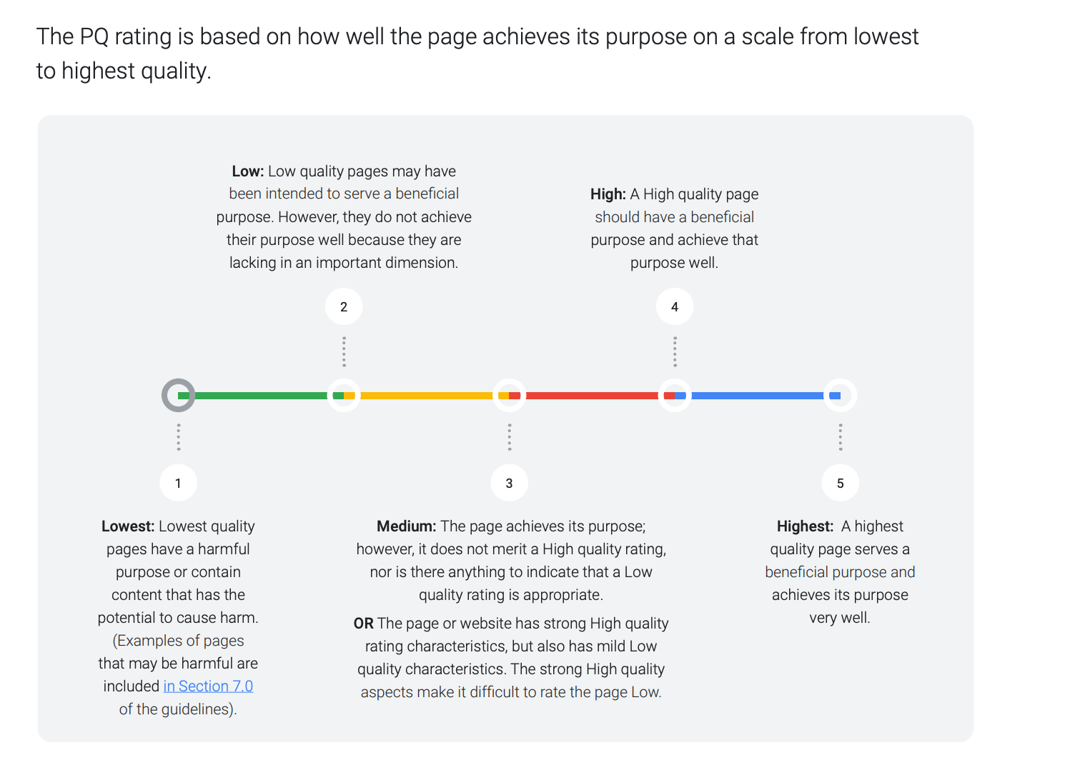 After you’ve mastered intent, it’s time to focus on quality. Specifically, you want to get familiar with Google’s content quality signals. Google uses Search Quality Raters to review search results and give each link a Page Quality rating (or PQ rating).