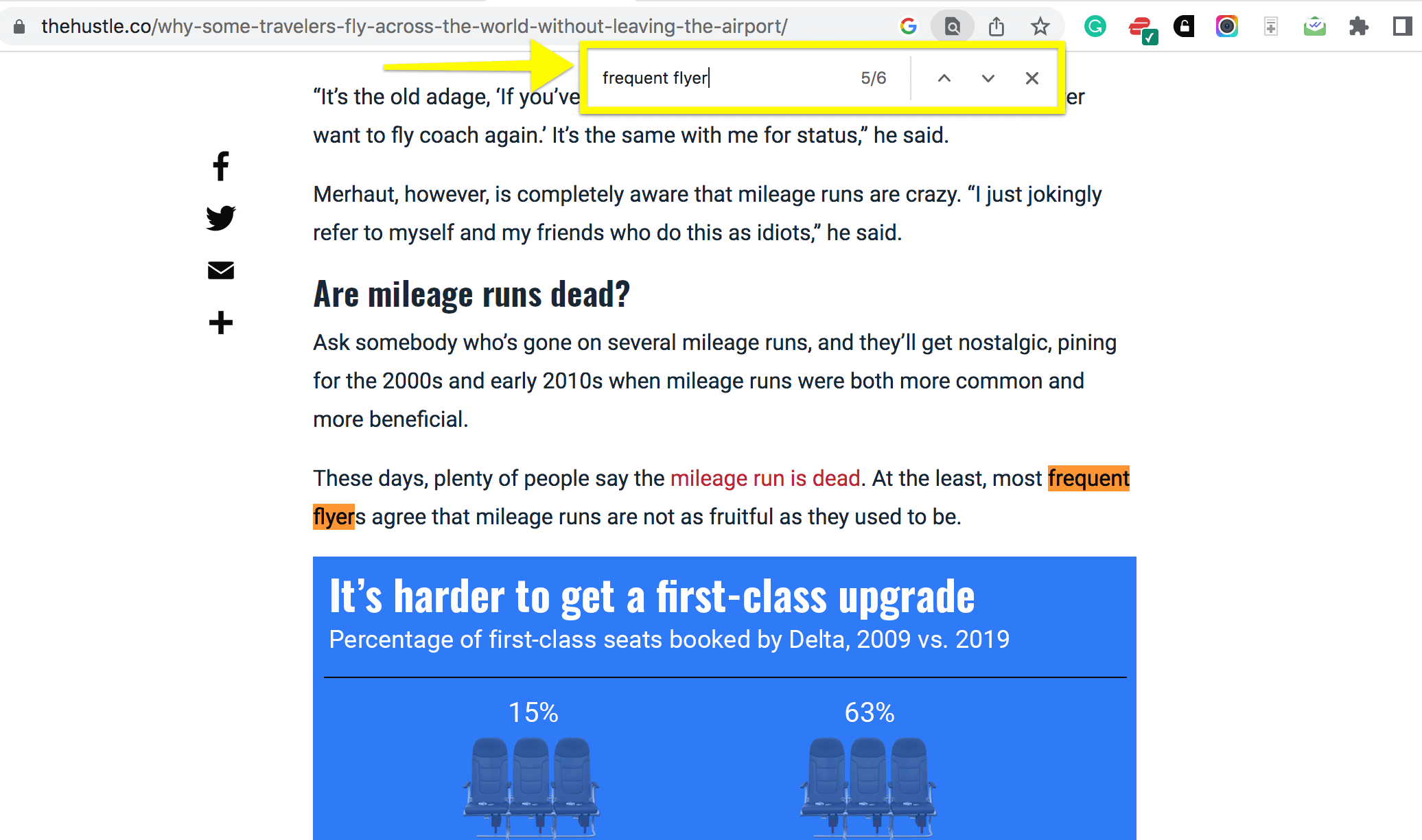 This method is best for searching for specific keywords or statistics you need to find on a single web page. It’s helpful for identifying sections like outdated promos, stats, or product features you may need to update.