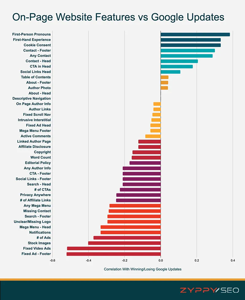 Cyrus Shepard completed a 50-site case study to determine what on-page factors are associated with sites that see big gains or declines after Google updates. Tap the image to see his original report.