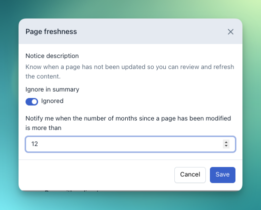You can now set up Page-level notices if pages within your Content Inventory have gone too long without a refresh.