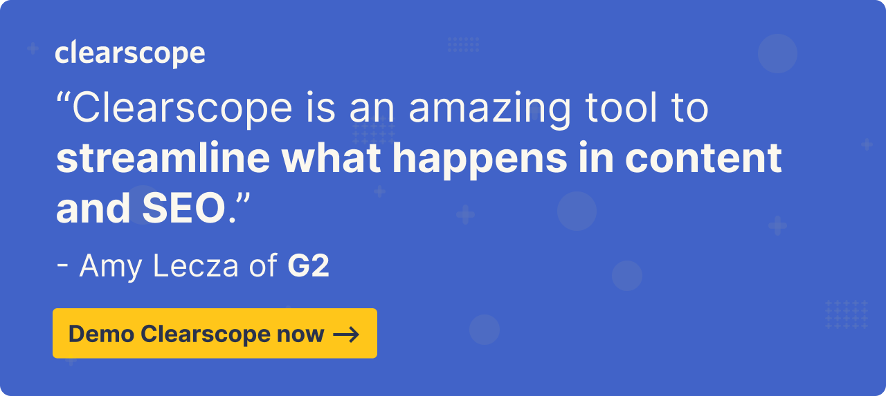 Note: Clearscope is our product. We’re proud of what we’ve built and believe we have the best content optimization and monitoring platform on the market. Request a personalized demo.