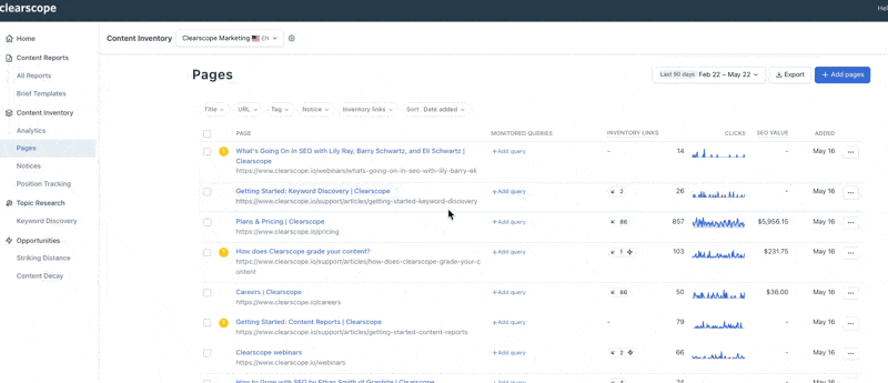 New Clearscope features announced in March streamline the management of your Content Inventory. Check out what's new inside.