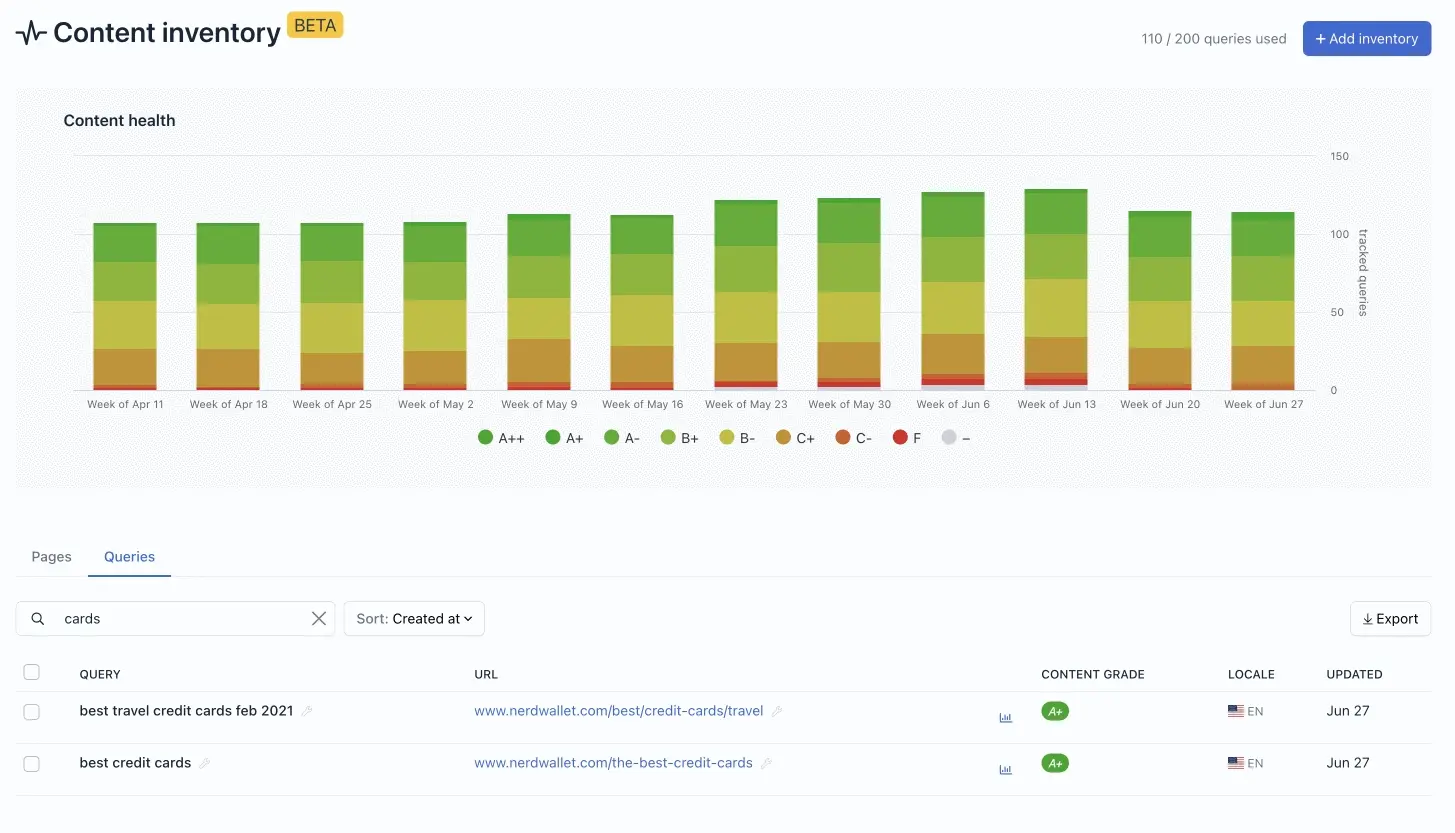 Not to mention, Clearscope also has a content inventory feature that keeps track of your existing content and sends notifications when something needs to be updated.