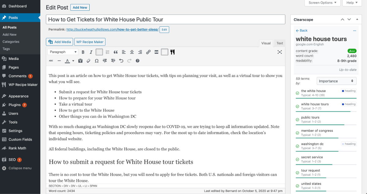 Clearscope's WordPress integration