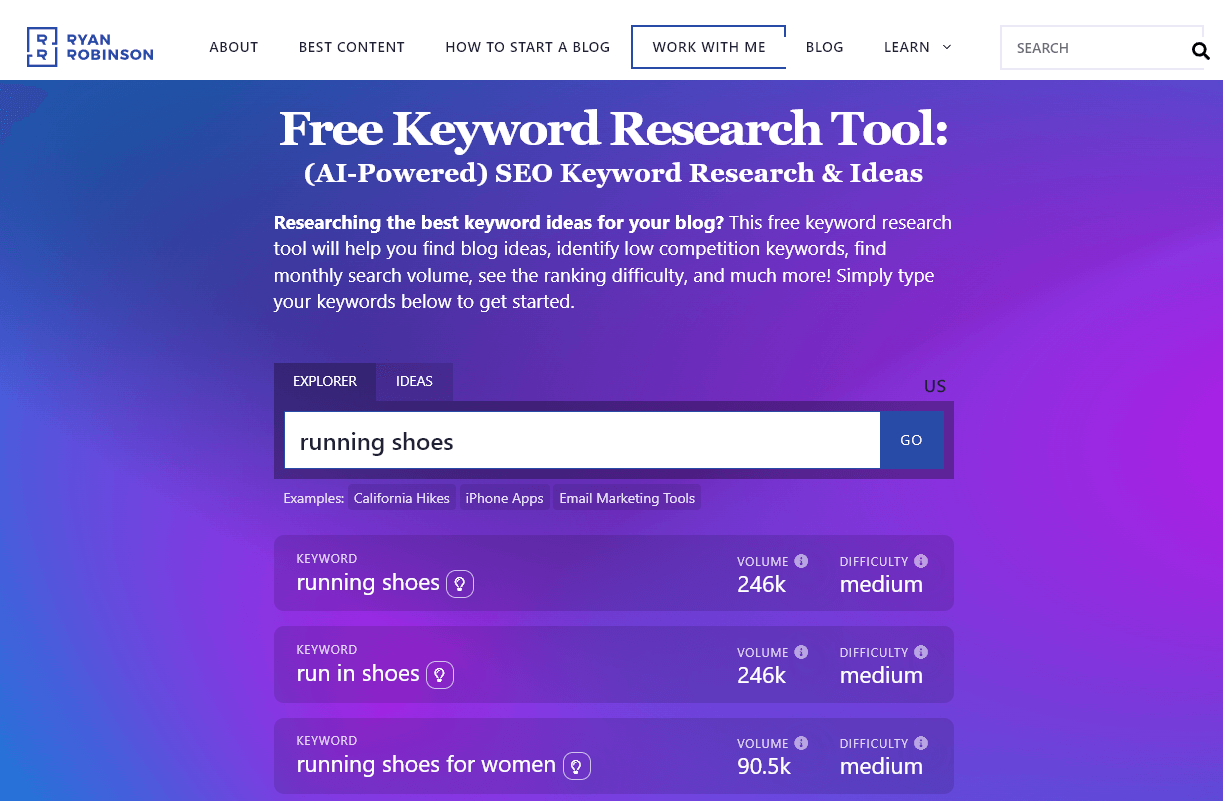 Best Beginner-Friendly: Free Keyword Research Tool by Ryan Robinson