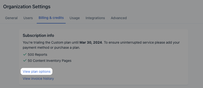 2. Click the “Billing & credits” tab on your Organization Settings screen