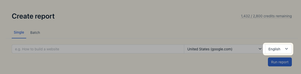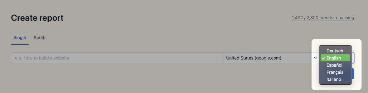1. Click the drop-down menu on the far right of the “Create draft” screen. English is the default language in the selection.