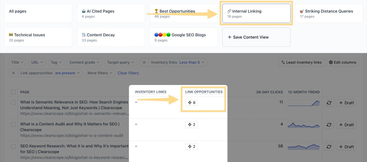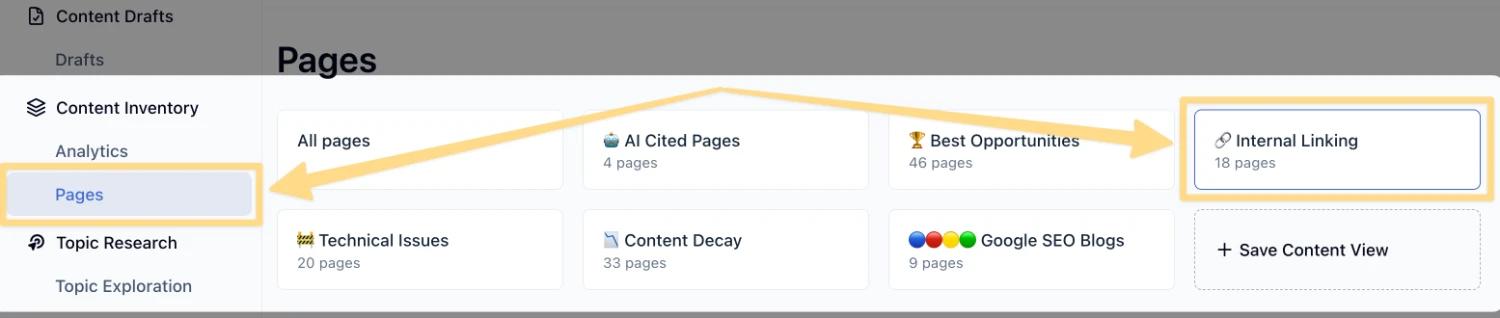 By using the Internal Linking Content View, you can ensure that your content ecosystem is interconnected, making it easier for users and search algorithms to discover and engage with your work.