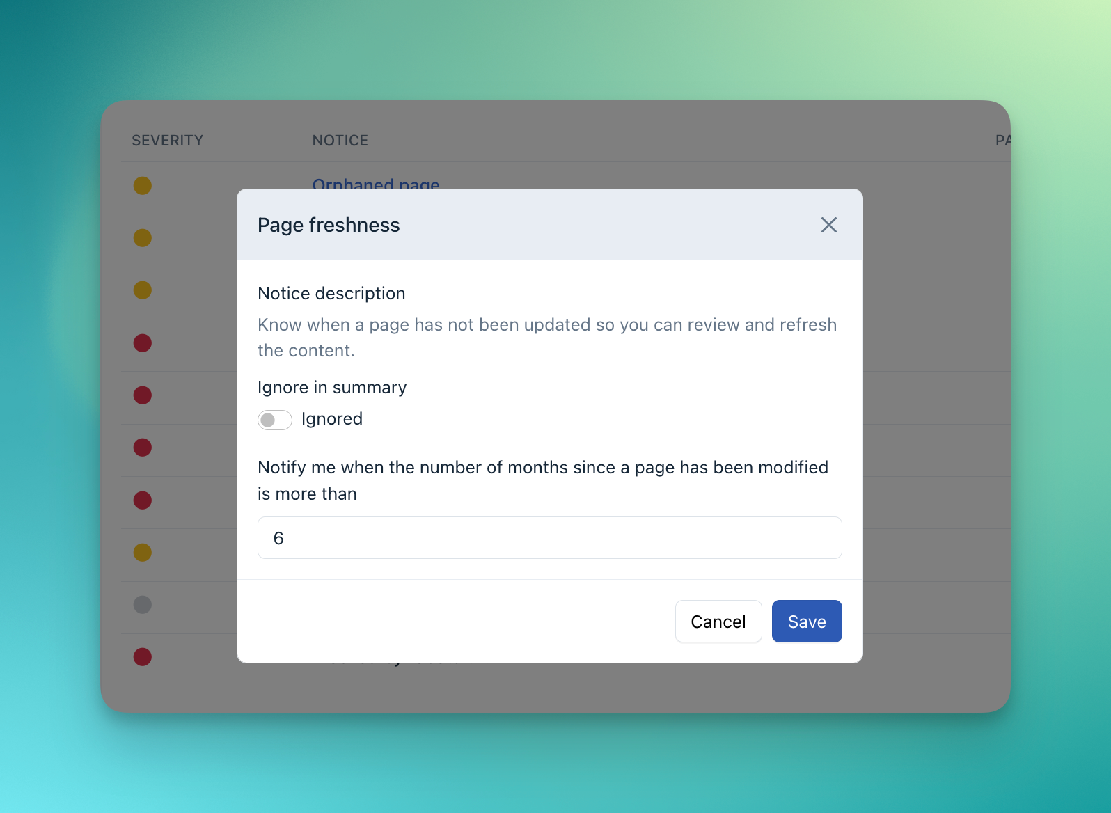 With this notice, you'll know when a page has not been updated within a specific time you've set. That way, you can review and refresh the content in a timely manner.