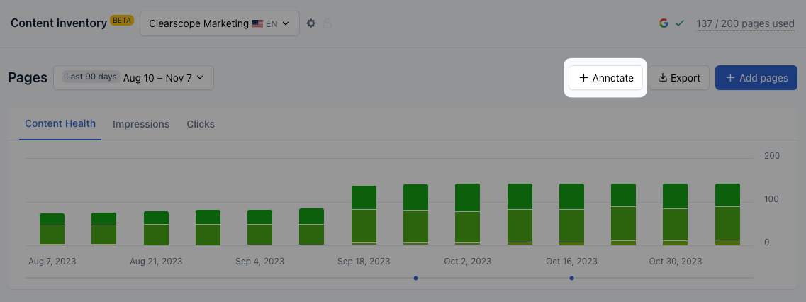 1. Go to your Content Inventory screen and click the “+ Annotate” button